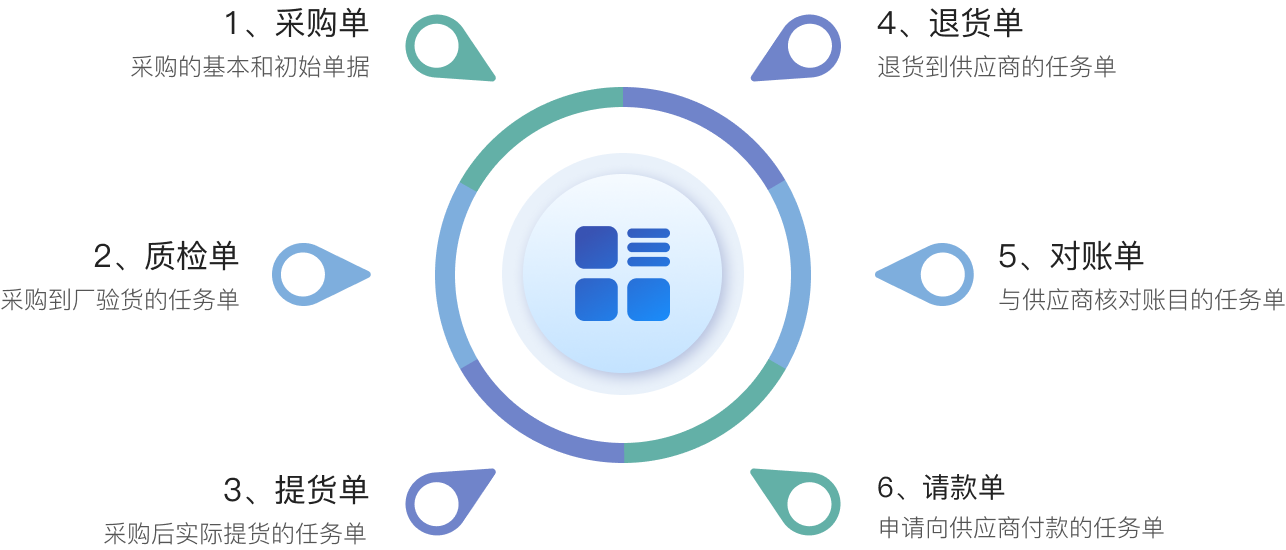 用不同的单据覆盖采购全流程,实现采购过程单据的全数字化,方便管理,提高效率